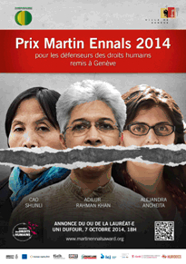 Announcement: Ceremony of the Martin Ennals Award 2014 on 7 October » 2014 poster MEA Geneva